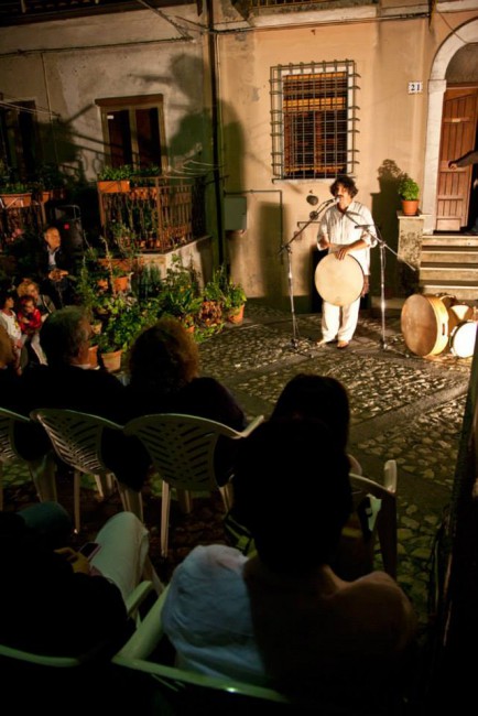 Nando è un artista calabrese di grande talento che ha tenuto i cittadini di Mormanno incollati alla sua voce e ai suoi tamburi per più di un’ora, raccontando storie e leggende che appartengono alla nostra tradizione, rilette e interpretate per solo tamburo e voce.